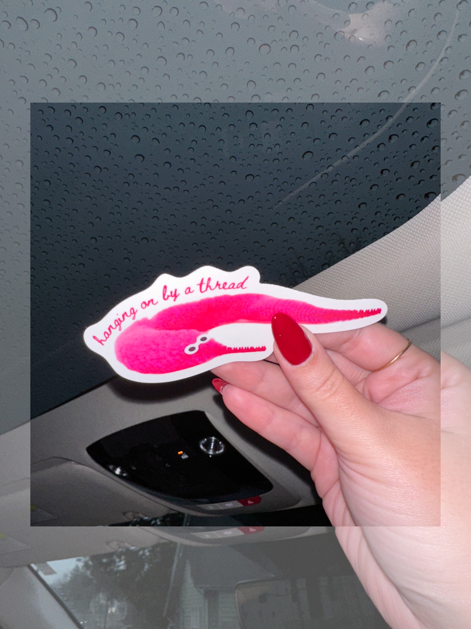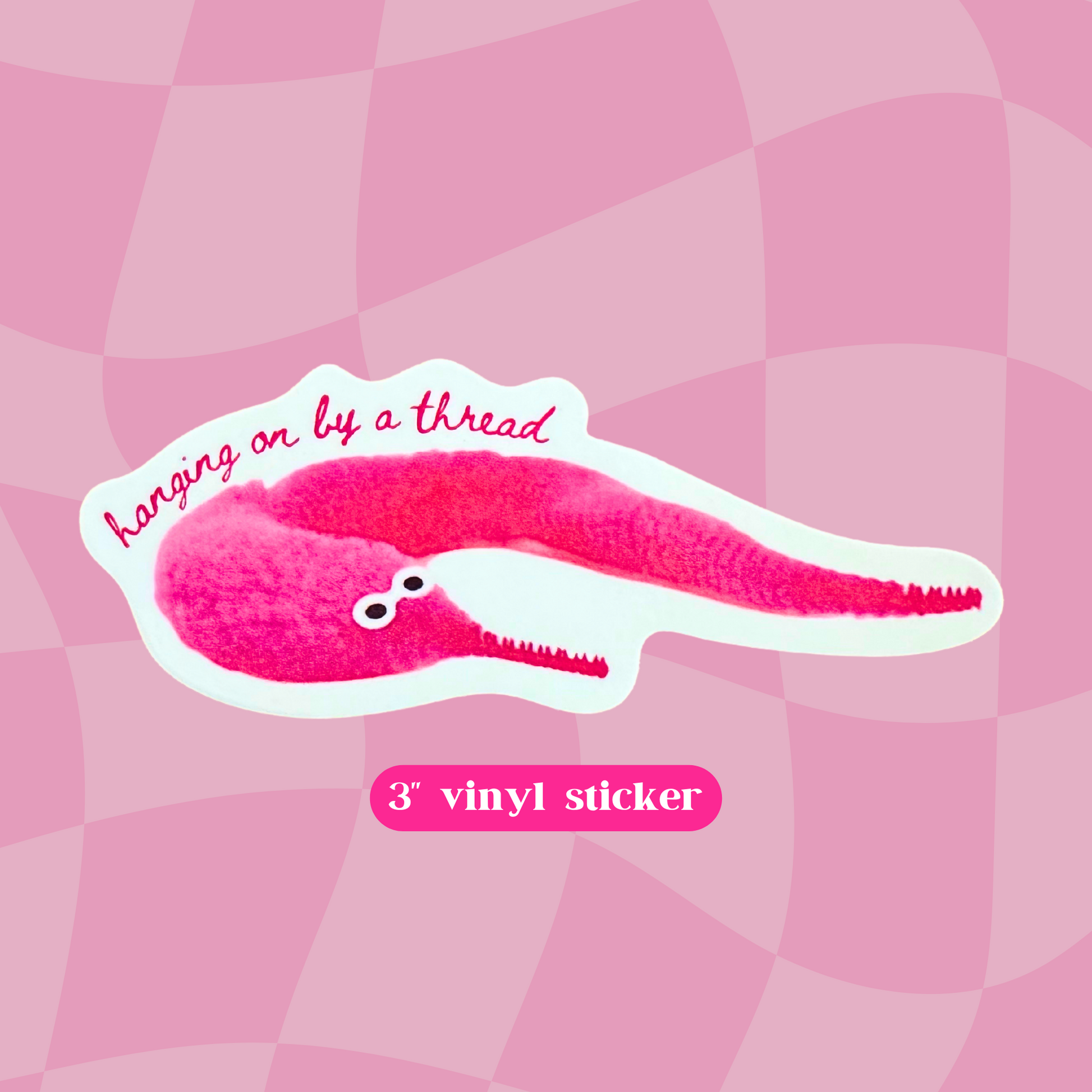 Hanging On By A Thread | Worm On A String 3" Vinyl Sticker